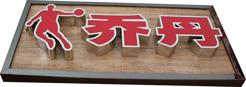 平板发光字的正面和侧面成直角,正面发光。字符的正面由3毫米的亚克力制成,具有透光性。字体是通过雕刻工艺成形的。角色的正面角度为平面直角。四周边缘为铁皮烤漆,底部为铁皮烤漆。厚度一般为7毫米。顶部设有LED灯珠。客户可以自己选择灯珠的颜色。