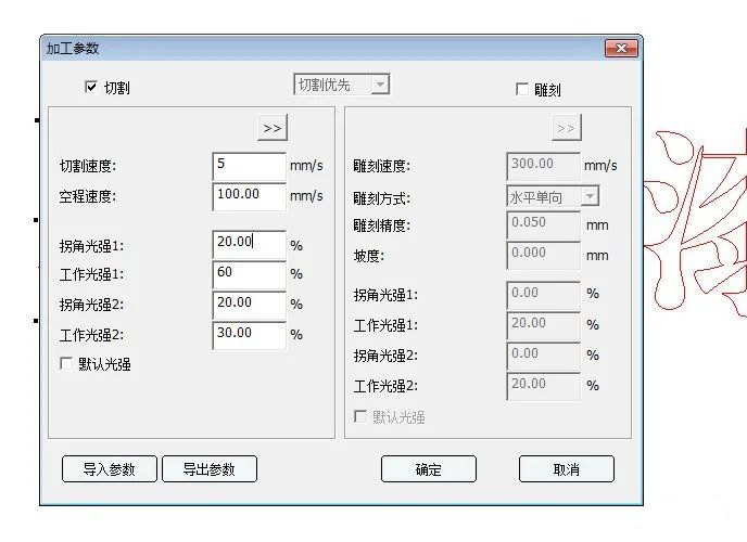 打个比方,切割松发油漆这四个字,在加工参数里设置如下
