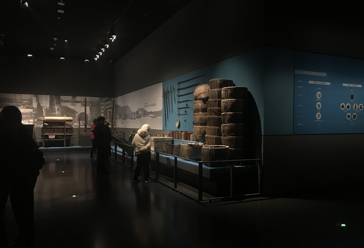 湖南省博现场,墙面用的是宣绒布,整张安装,没有接缝。