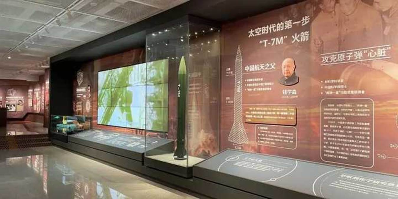 大国重器:立面继续沿用了前面展区的方形展墙造型,墙面以宣绒布画面作为背景,造型层次集中在展台的设计上,留缝和金属台面的包边,彰显了设计的细节。