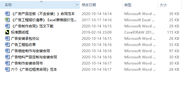 引言:在人们越来越相信法律的社会,许多情况是不能离开合同的,签订合同可以更有效地约束违约行为。相信大家又在为写合同而烦恼了吧,在此,佐邦标识小编根据大家的需要,整理了广告行业合同范本大全打包下载,文档为word格式、图纸框为cdr格式,模板可修改,供大家免费下载使用。具体内容如下: