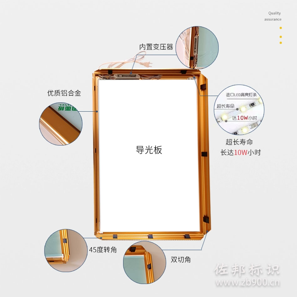 由于超薄灯箱只有20mm-30mm的厚度,为了保证光线的均匀,所以超薄灯箱会内置一起高强度纳米导光板,通过这张导光板,就可以把周围LED灯条的灯光均匀的导入到内部,使其灯光均称。当然,市面上普通的LED灯条肯定是不能满足需求的,一般要安装高密度的LED灯箱,结合纳米导光板的构造原理,使得超薄灯箱不但在厚度上大大优于普通灯箱,其节能效果也更加优秀,仅仅是普通灯箱10%左右的功率。