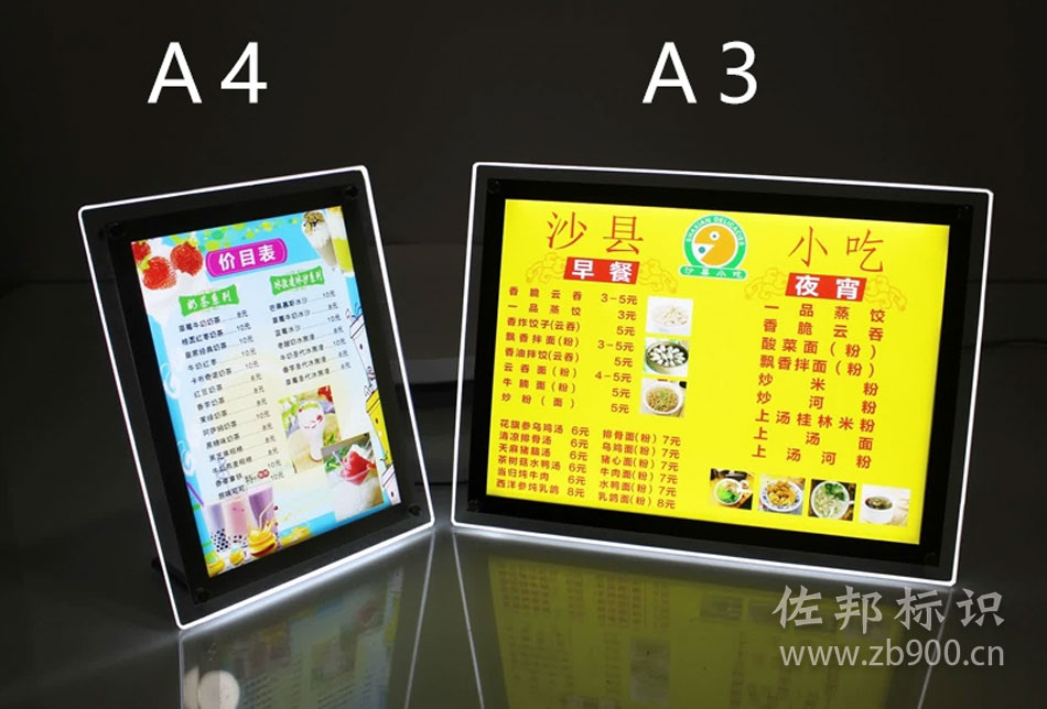 佐邦标识经过多年发展,已经具备了各类型超薄灯箱的生产和批发,可以制作各种灯箱的超薄灯箱、奶茶灯箱、水晶灯箱、卡布灯箱、拉布灯箱、3M灯箱等等。并且可以为客户免费设计,免费上门测量,咨询热线:18190904810 QQ:853629955,如果你需要制作超薄灯箱,可以联系我们,我们将竭诚为你服务!