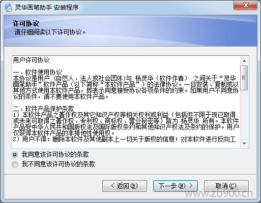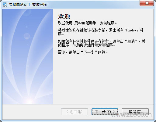 1.到佐邦标识官网www.zb900.cn下载灵华画笔助手,打开安装程序,点击下一步,继续安装
