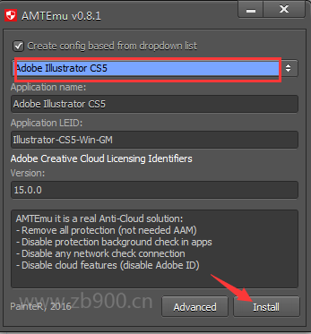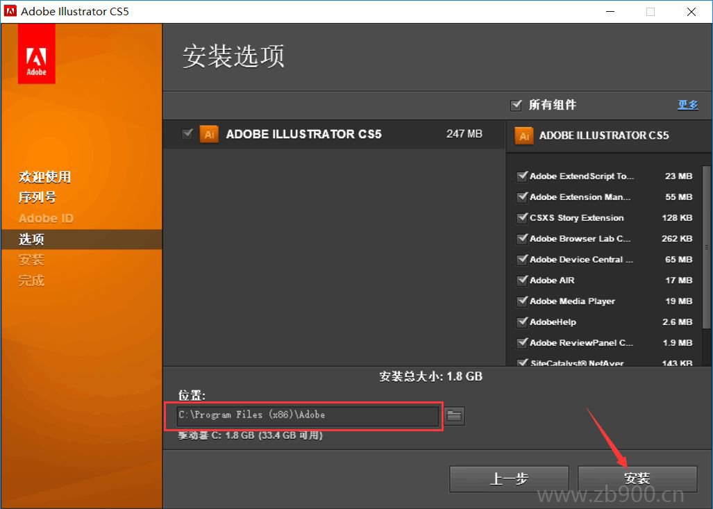 9.上面第一栏中选择Adobe illustrator CS5,点击Install